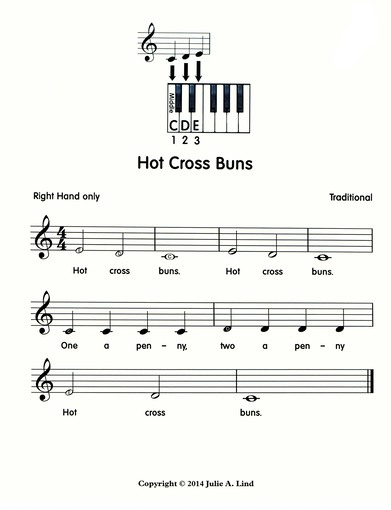 Down below is sheet music for a simple song you can try with these three keys. Practice this over and over until it is solid.